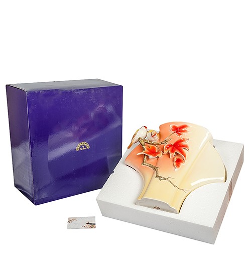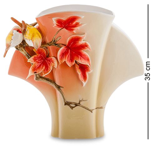 Дивовижна і прекрасна ваза 'Кленовий лист' зачаровує з перших миттєвостей. Ніжні відтінки персикового кольору, у поєднанні з соковитим багрянцем осіннього листя, створюють справді чудовий виріб. Зверніть увагу, як реалістично виглядають пташки на гілці дерева!