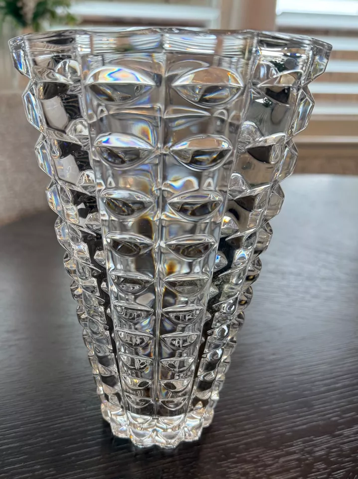 Її витончений дизайн з рельєфним візерунком нагадує гру світла на гранованому кристалі, створюючи дивовижні відблиски. Висота 26 см робить цю вазу ідеальною для різних квіткових композицій — від ніжних польових букетів до розкішних троянд. Вона стане справжньою окрасою будь-якого інтер’єру, додаючи нотки елегантності та аристократизму у ваш дім.