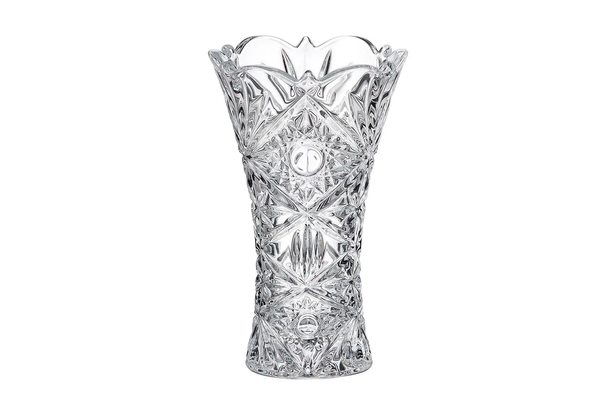 Ваза предназначена для букетов, подчеркивает их красоту и пышность. Богемское хрустальное стекло - это всемирно известный продукт высокого качества, произведенный в Чехии. Широкий ассортимент продукции включает в себя посуду каждодневного использования, а так же эксклюзивные предметы, изготовленные вручную. Отличительной особенностью богемского хрусталя является отсутствие свинца, что обеспечивает безопасность Вашего здоровья. Вместо свинца используется оксид титана, который придает прочность посуде и стойкость к истиранию. Серия Miranda представлена декоративной посудой и вазами. Филигранная резьба, покрывающая всю площадь предметов отличается искусностью и богатством узоров.
