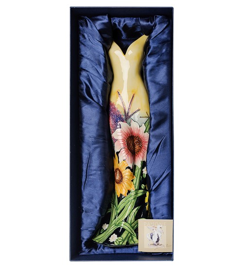 Напольная ваза «Платье» настолько изыскана, что никто с этим не будет спорить. Она словно шедевр искусства. Мастера проработали каждую ее деталь. Декольте, подол платья, плавные линии талии смотрятся просто роскошно. А чего только стоит цветовая гамма. Ее нежный, теплый верх превосходно дополняется удивительной картиной цветов. Цветы настолько яркие, что невозможно их не заметить. Они дополняют и делают просто идеальной и совершенной вазу-платье.