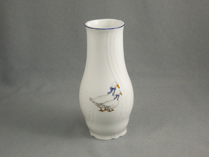 Ваза порцелянова з малюнком Bernadotte Гуси 19 см із синім кантом