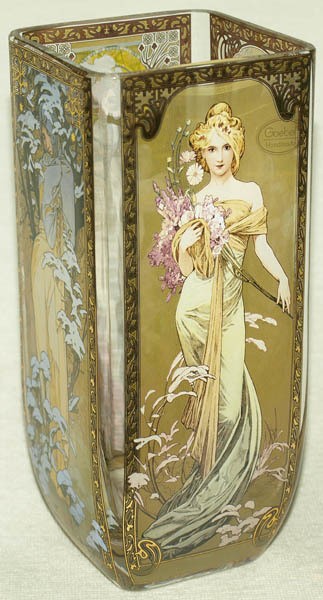 Ваза декоративная -репродукция стекло А. Мухи «4 времени года. Весна» 24 см