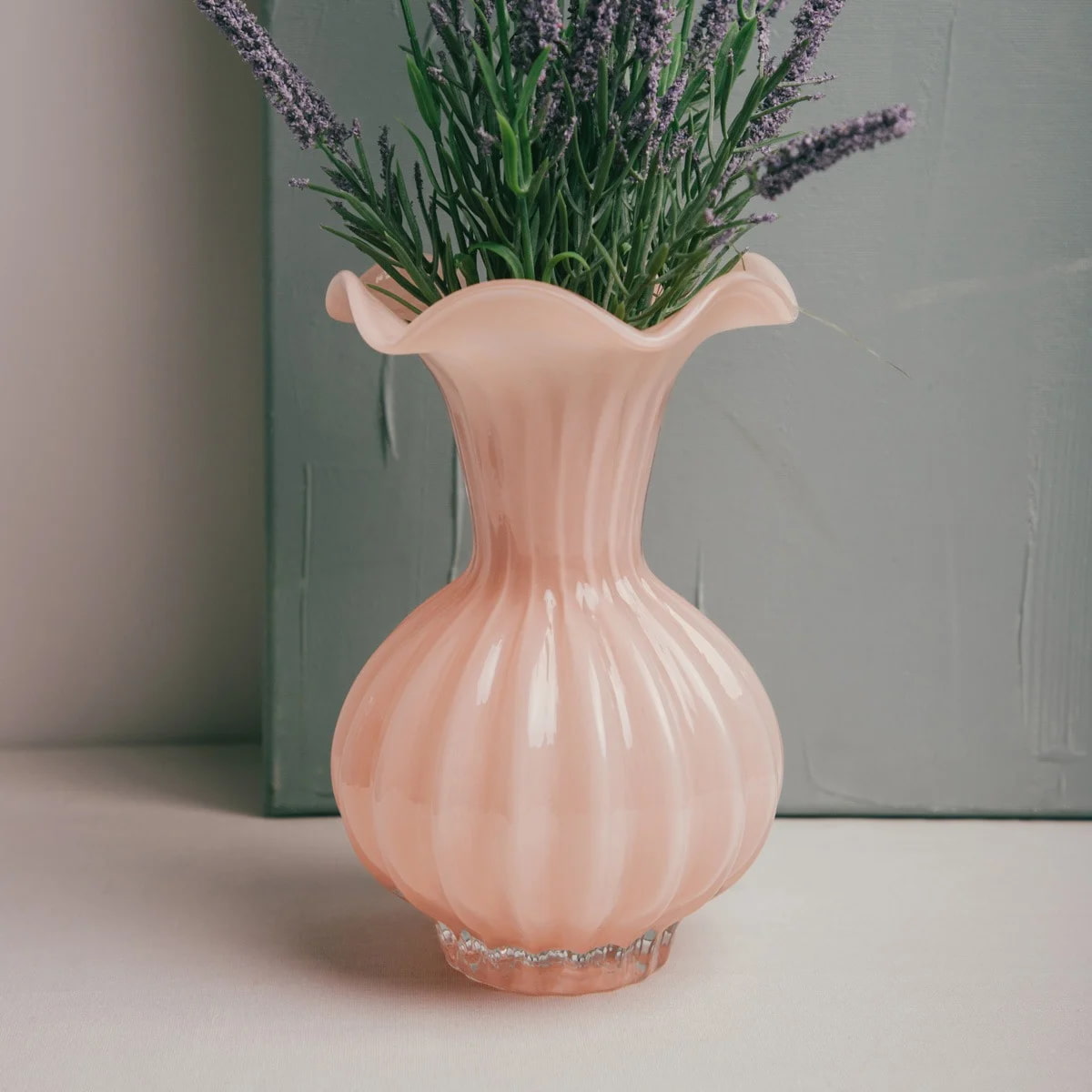 Ваза скляна для квітів рожевого кольору Tender Bloom Ø16х28 см