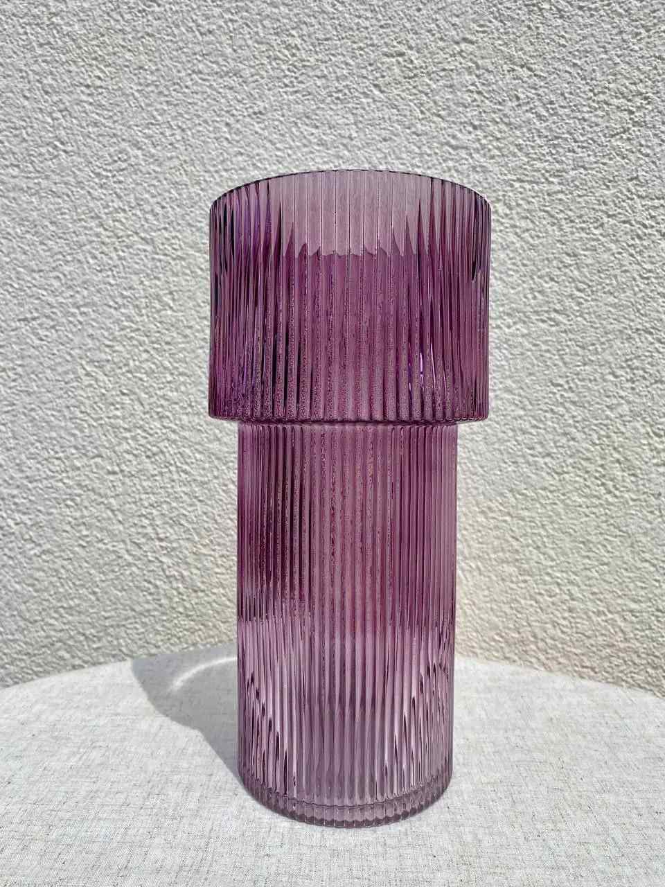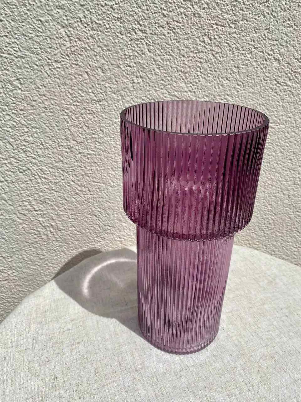 Рифлене скло насиченого сливового відтінку — це не просто матеріал. Це гра світла й тіні, це емоція. Поверхня ваз із колекції Urban Plum змінюється впродовж дня, додаючи простору динаміки та живості.