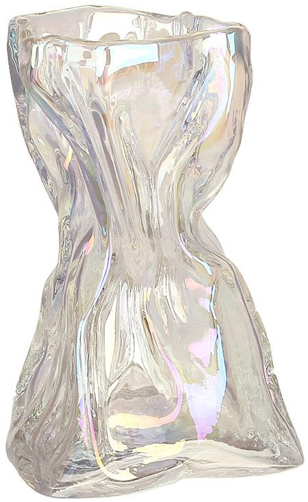 Изготовлена из полупрозрачного стекла с нежным перламутровым отблеском и рельефной текстурой, имитирующей легкую смятость. Компактные размеры (10×8,5 см, высота – 16 см) делают её идеальным дополнением к любому интерьеру. Для безопасной транспортировки ваза надежно упакована в прочную картонную коробку.