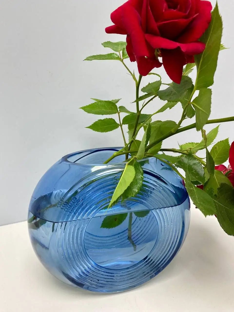 Ваза скляна круглої форми блакитна Blue Horizon 19*10*16 см