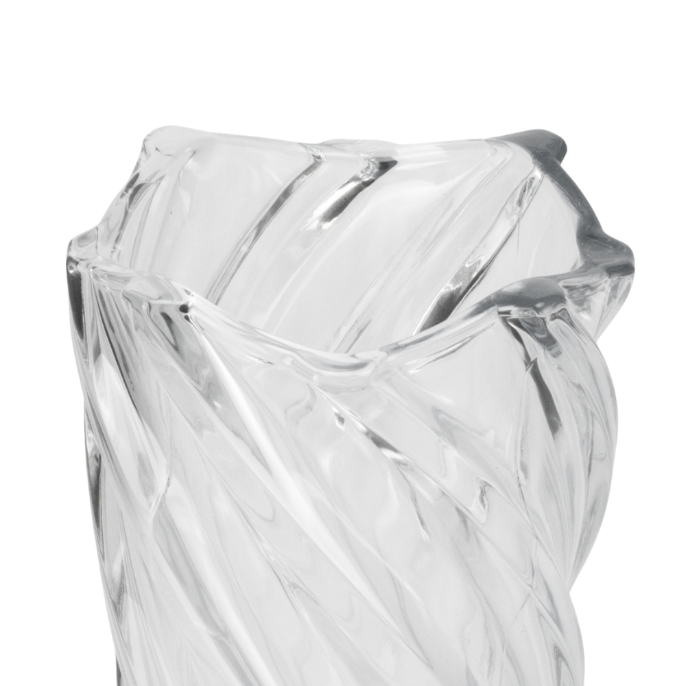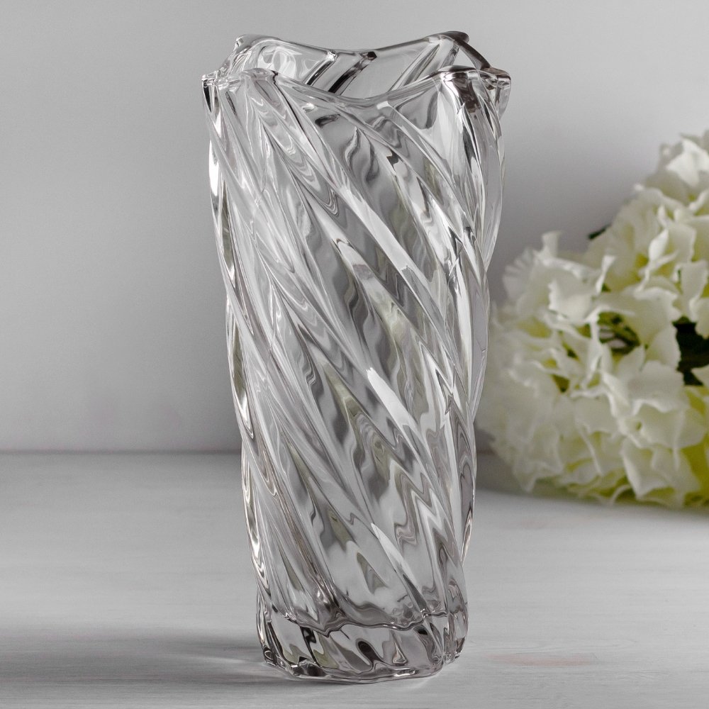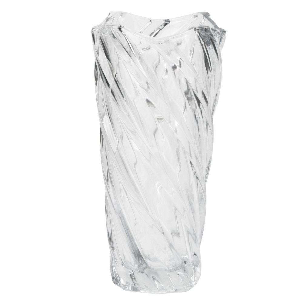 Ця скляна ваза поєднує в собі витонченість і оригінальність. Витягнута форма підкреслює її елегантність, а рельєфний візерунок або закручені лінії створюють незвичну гру світла, роблячи її яскравим акцентом в будь-якому інтер’єрі.