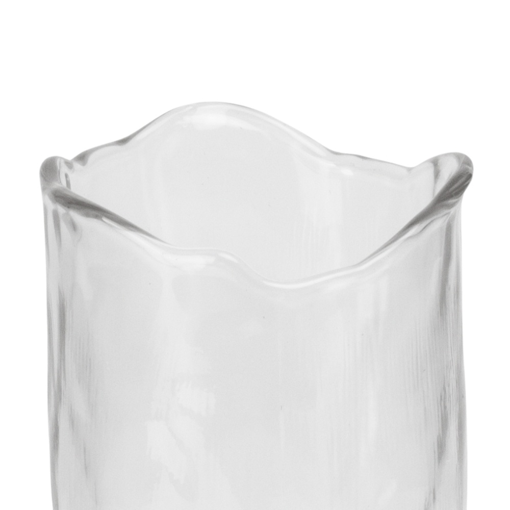 Колекція Wave Texture — це витончене втілення мінімалізму та плинних форм. Кожна ваза виготовлена з прозорого скла з вертикальним рифленням, що нагадує водну гладь, яку злегка зачіпає вітер. Хвилястий край додає м’якості та динаміки, перетворюючи вазу з простого предмета на стильний елемент декору.