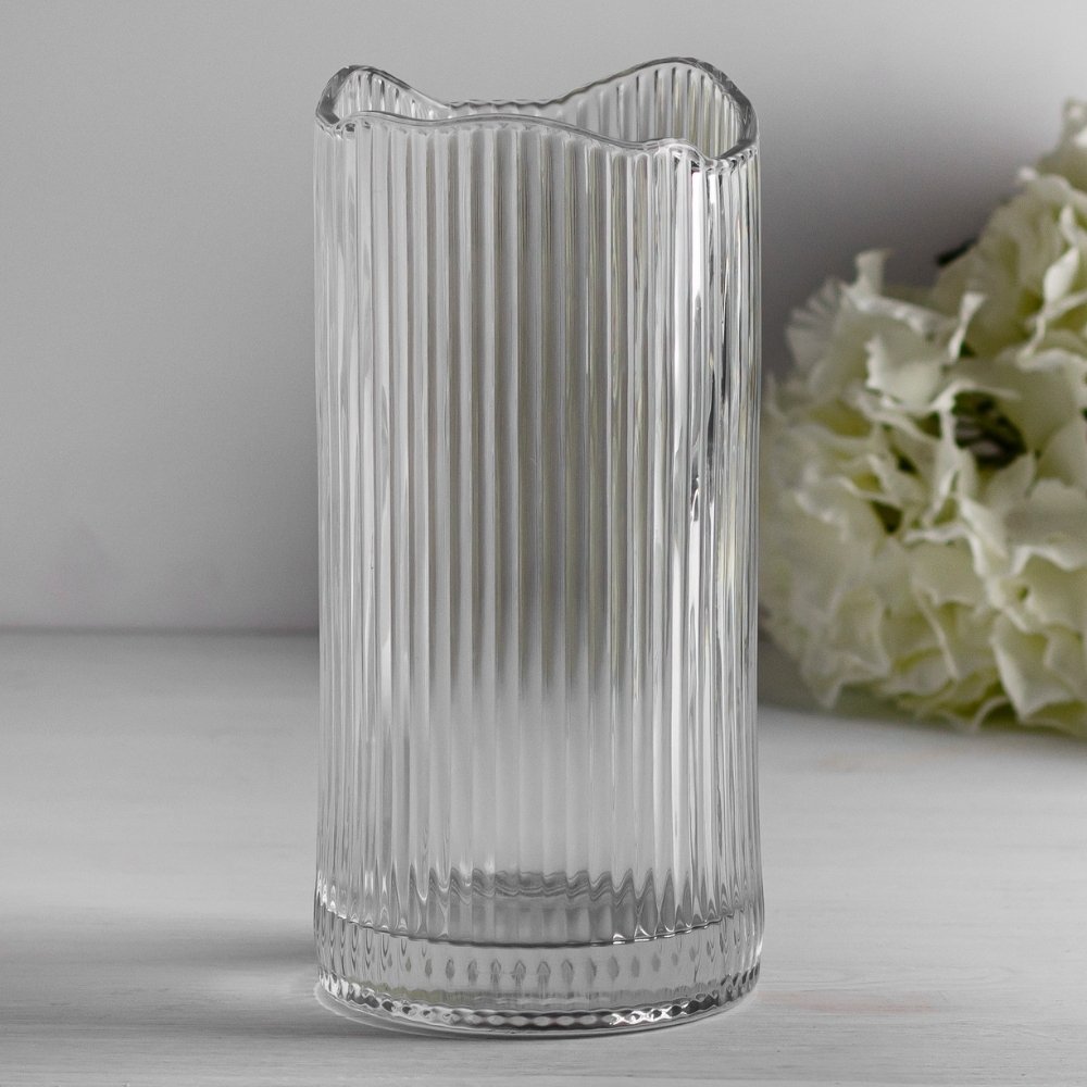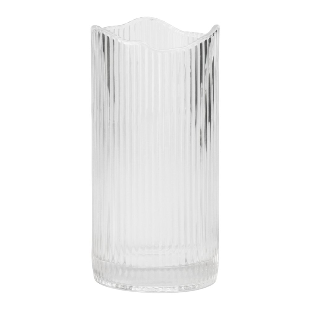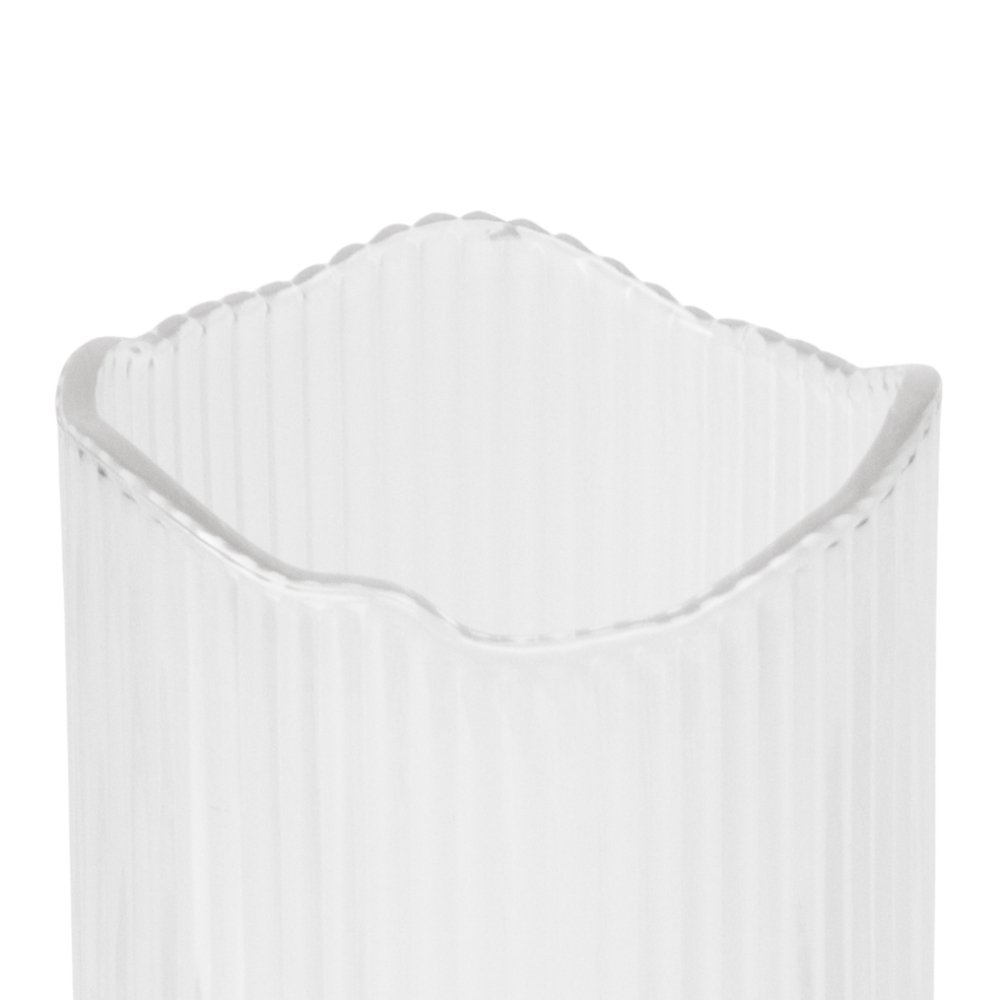 Вишукана скляна ваза з хвилястим краєм і чіткими вертикальними гранями стане стильним акцентом у будь-якому інтерʼєрі. Вона ідеально поєднується з сучасним, мінімалістичним або скандинавським стилем, підкреслюючи витончений смак господарів дому.