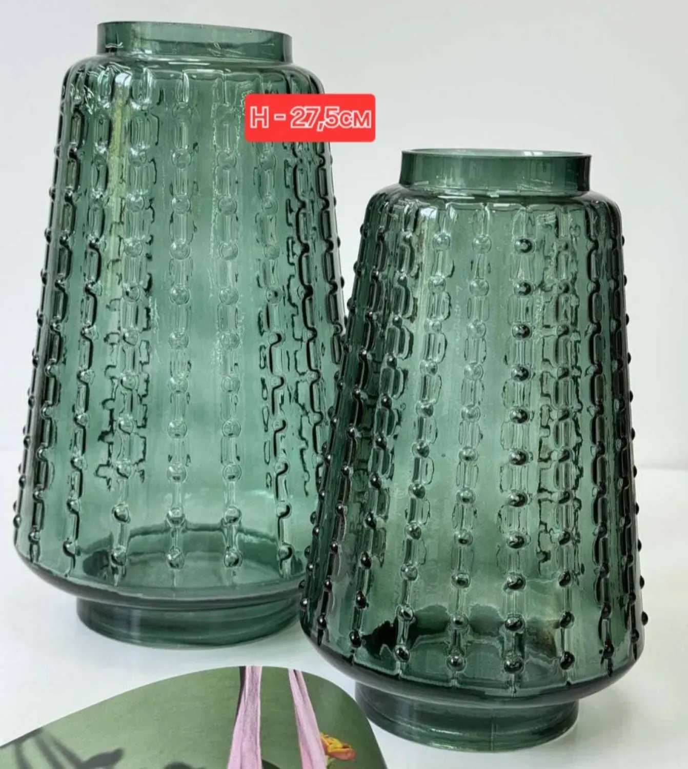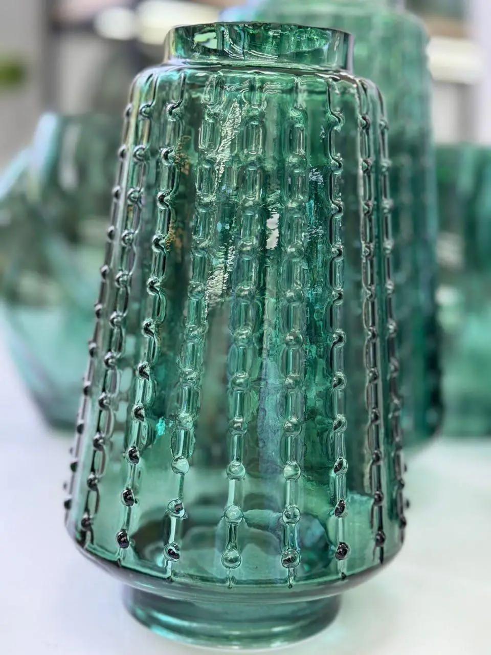 Колекція Urban Texture — це гармонія міської геометрії та природної текстури. Ці вази захоплюють насиченим зеленим кольором та рельєфною поверхнею, що нагадує структуру бетонних стін або старого каменю. Кожна деталь — від форм до характерних виступів на склі — ніби розповідає свою історію, створюючи ефект живої текстури.