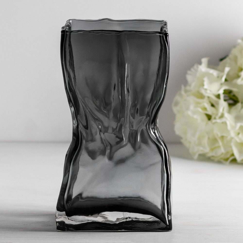 Ваза стеклянная черная фигурная Twist Reflection 24 см
