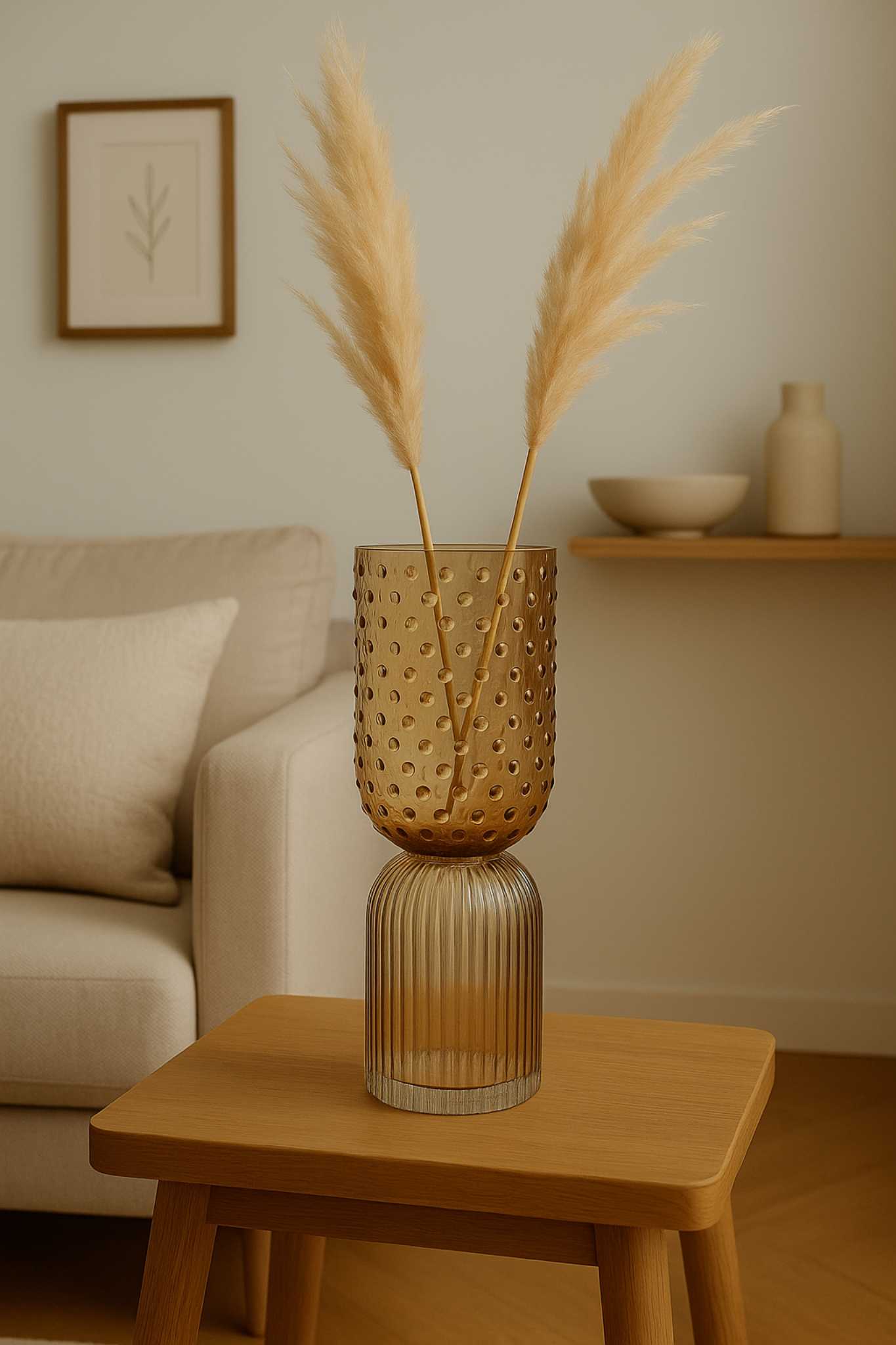 Эта ваза словно вобрала в себя тепло летних вечеров и переливы мягкого золотистого света. Ее утончённая форма и продуманные пропорции делают её универсальным акцентом для любого интерьера — будь то минимализм, современная классика или уютный скандинавский стиль. Поставьте в неё нежные цветы, сухоцветы или оставьте пустой — в любом случае Ariadne "Керол" притягивает взгляд и создаёт настроение.