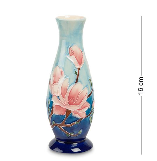 Вазочка фарфоровая голубая Весенние цветы 16 см