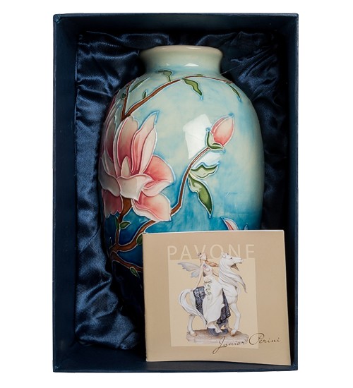 Порцелянова вазочка для квітів блакитна Весняні квіти 20 см