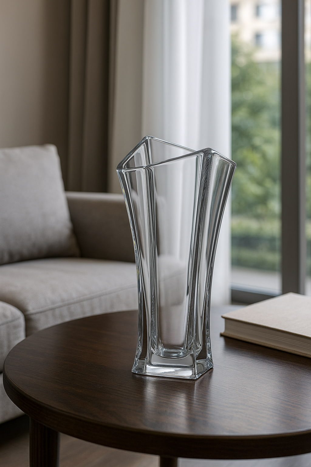 Чеське скло у цій вазі демонструє себе на повну: прозоре, важке, з ідеальною гладкістю. Квіти в ній стоять рівно, красиво віддзеркалюючись у стінках. Та навіть без наповнення "Dynasty" не втрачає свого значення — вона працює як самостійний декоративний об’єкт.