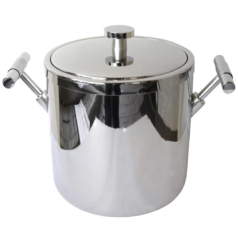 Ведро для льда из нержавеющей стали с двумя удобными ручками и щипцы. Прекрасно подойдет для подачи с крепкими, слабыми алкогольными напитками, а так же соками и водами. Имеет ровную форму и блестящую полировку, за счет чего прекрасно войдет в любой интерьер.