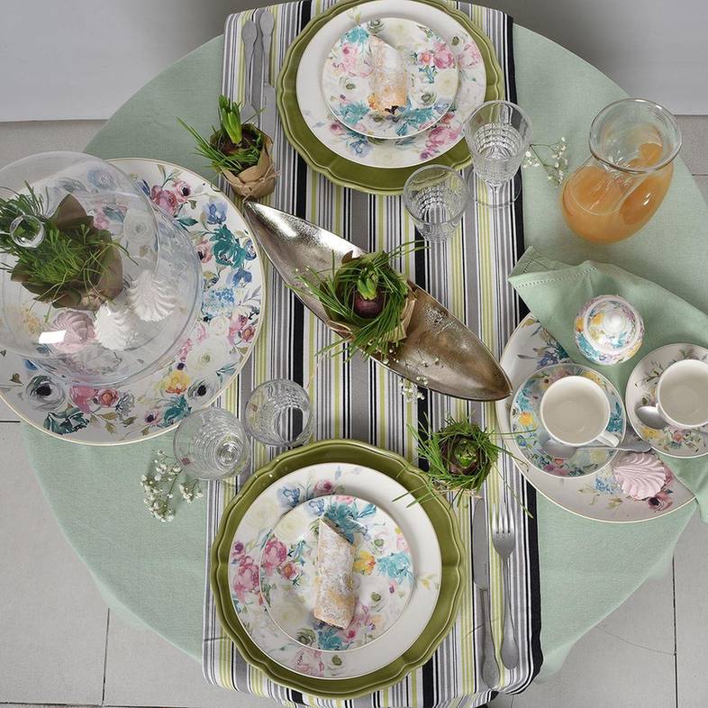 Блюдо "У раю" – це атрибут свята, чи то урочисте сервірування, чи щоденний сімейний обід. Квіткові пелюстки на керамічній поверхні утворюють малюнок у стилі акварелі з легким вологим розмиттям. Світлий посуд із делікатним, але виразним дизайном чудово доповнить вишукане класичне сервірування, а також затишні композиції у стилі прованс і шеббі-шик. Багатобарвна палітра малюнка дозволяє поєднувати цю страву з керамікою різного кольору.