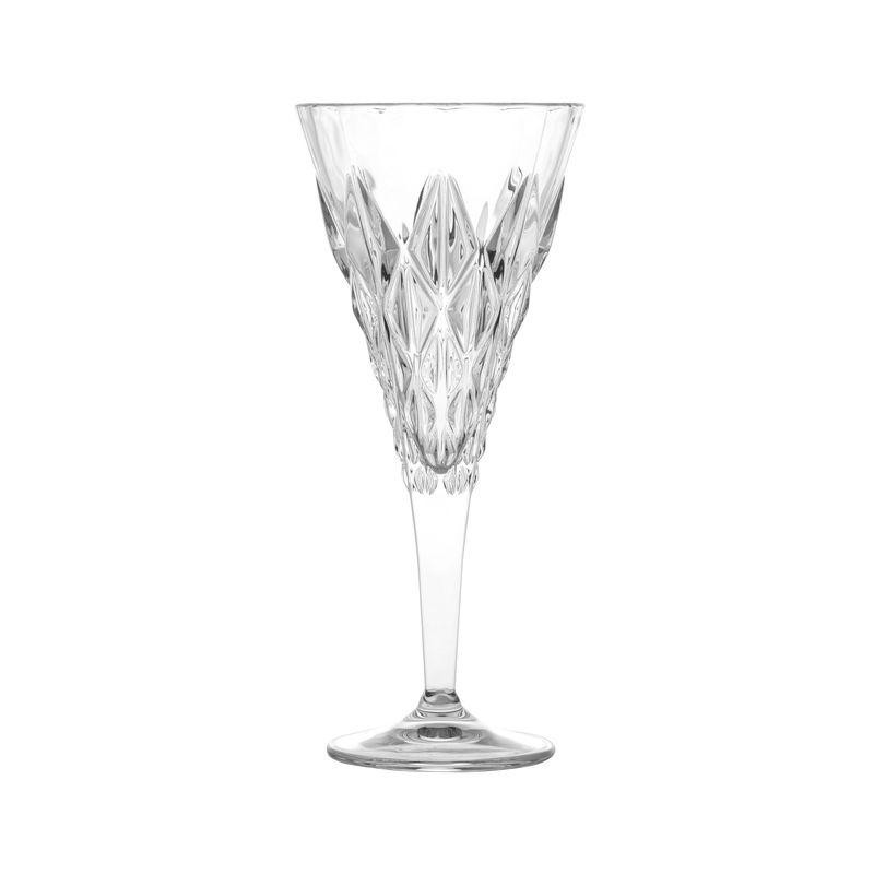 Неповторний почерк Brandani вгадується навіть із традиційних скляних бокалів для вина. Витончена конусоподібна чаша на високій ніжці – це діамантовий стандарт сервірування. Але італійські дизайнери додали до нього креативний акцент у вигляді великих рельєфних кристалів, якими оздоблені прозорі стіни. Об'ємний геометричний орнамент відіграє яскравими відблисками, підкреслюючи не лише бездоганну чистоту скла, а й відтінок напою. Ці келихи ми пропонуємо у класичній комплектації із 6 штук.