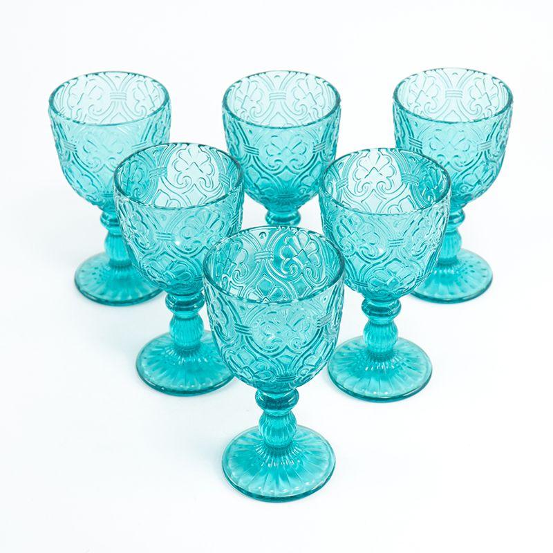 Винные бокалы голубые стеклянные 300 мл "Коринто" на 6 персон