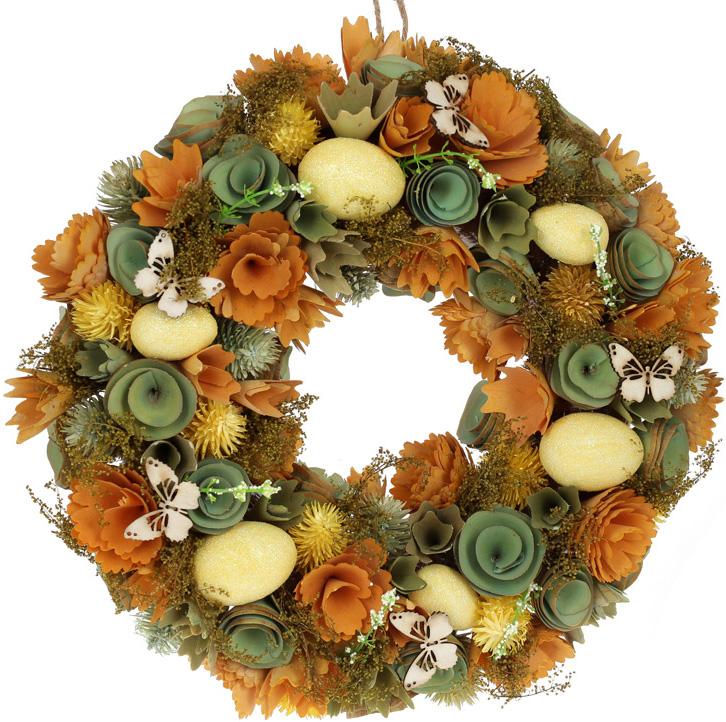 Декоративный пасхальный венок оранжевый "Forest Whispers" 33 см