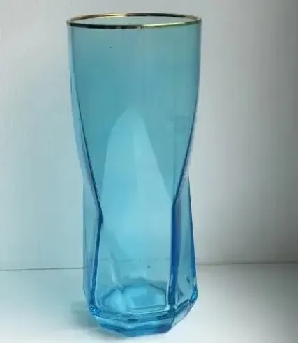 Висока блакитна склянка для соку скляна Olens Геометрія 225 мл із золотою обвідкою