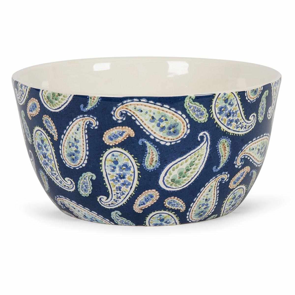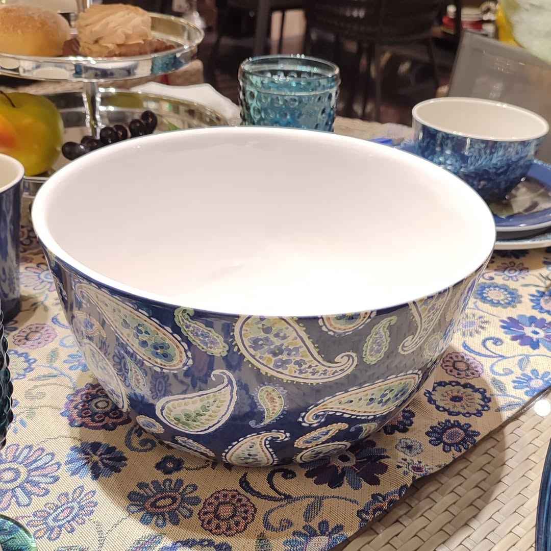 Высокий салатник из керамики с узором пейсли Синие Цветы Богемии 28 см