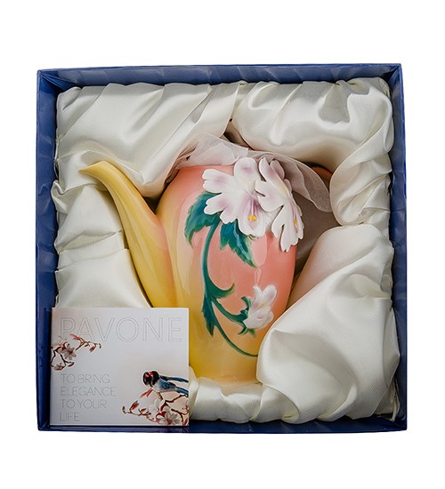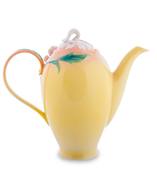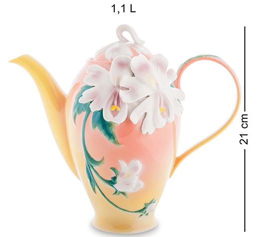 Дивно ніжно поєднані в цьому виробі тепла кольорова гама, така доречна на кухні, і невигадливий, але нескінченно витончений візерунок, що ніби огортає чайник ніжними стеблами і запашними квітами. Така річ може стати центром кухні, гордістю господині, радістю для гостей та домочадців.