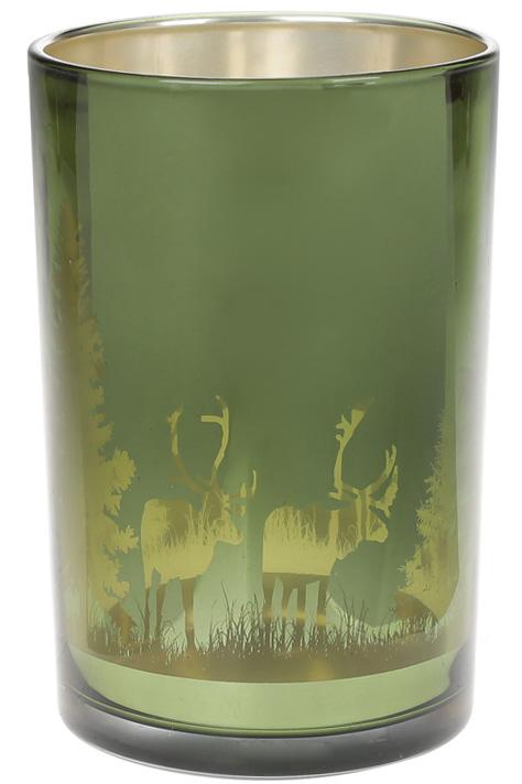 Зеленый стеклянный подсвечник В лесу 12х18 см